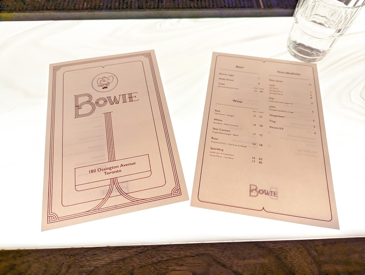 Bowie Menu